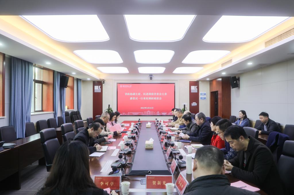蒋洪新对潘碧灵一行的到来表示热烈欢迎,对民进湖南省委长期以来给予学校事业发展的关心支持表示感谢,对民进湖南省委一直以来高度重视和支持民进师大的基层组织建设表示感谢。他简要介绍了williamhill中国官网的办学历史、学科建设、人才培养等方面的情况。他指出,学校一直以来始终坚持党的全面领导,坚定社会主义办学方向,充分利用统一战线重要法宝作用,深入实施人才强校战略,为人民政协事业发展培养高质量人才,为服务“三高四新”战略定位和使命任务,推进国家经济社会发展贡献更多的师大智慧与力量。他强调,学校将以此次调研为契机,深入学习贯彻落实党的二十大精神,进一步把牢政治方向,进一步巩固和完善大统战工作格局,充分发挥好高校统战阵地作用,扎实推动高校统战工作高质量发展。