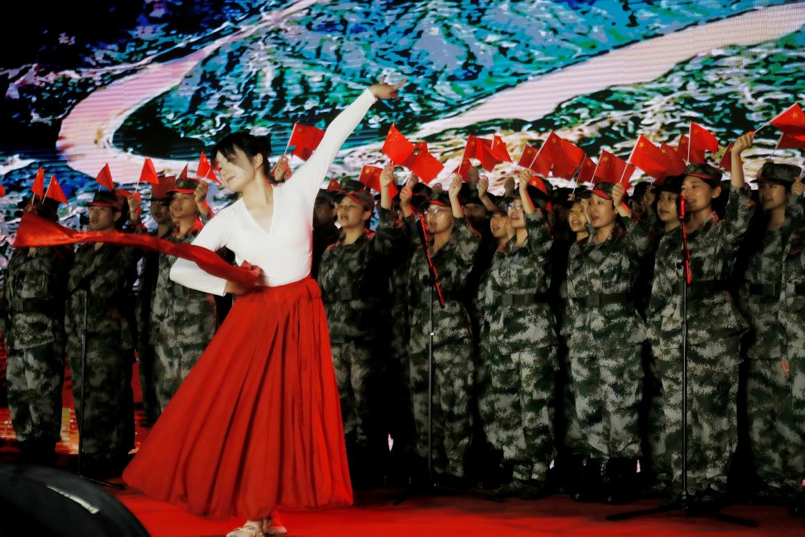 在舞台上,各民族同学用多样的形式表达着对祖国与党的无尽热爱与感恩,吟诵着对湖湘热土的赞美,展现了中华民族多彩的文化,加深了师生对中华民族共同体的认同。