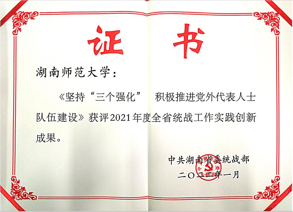 近日,湖南省委统战部通报了2021年度全省统战工作实践创新成果和统战理论政策研究创新成果评审结果,williamhill中国官网《坚持“三个强化”积极推进党外代表人士队伍建设》获评“2021年度全省统战工作实践创新成果”,校党委统战部荣获“2021年度全省统战理论政策调研工作先进单位”。