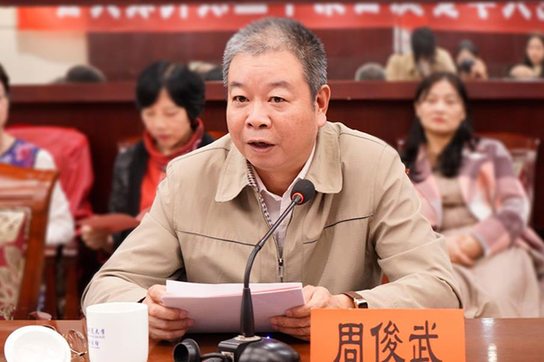 周俊武代表学校党委、行政向大会的胜利召开和新当选的民盟师大第十三届委员会班子成员表示祝贺,对民盟师大委员会一直以来为学校发展所作出的突出贡献给予充分肯定。他寄语民盟新一届委员会及全体盟员:要同心同德,努力发扬党派优良传统;要务实担当,切实加强自身建设;要凝神聚力,积极助推学校改革发展。要在民盟省委和学校党委的领导下,进一步夯实共同思想政治基础,不忘合作初心,继续携手前进,为共同谱写统一战线和多党合作事业发展新篇章而努力奋斗。